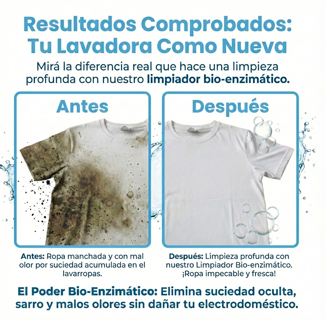 El detergente no limpia el interior de tu lavarropas. Con el tiempo puede empeorar el problema porque se mezclan residuos de jabón, grasa, sarro y suciedad, formando una capa pegajosa en el tambor, mangueras y juntas.